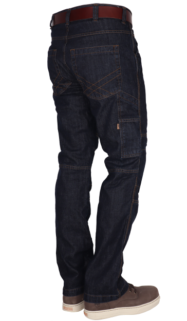 Deze multifunctionele werkspijkerbroek is een Jeans voor werk en vrije tijd. De heren werkbroek is uitgevoerd met veel functionele zakken zoals duimstok- en telefoonzakje, en is voorzien van een handige sleutelring, deze is dubbel doorgestikt voor extra kwaliteit. Met een lichte Stonewash voor een mooie representatieve egale donkere kleur.